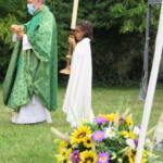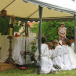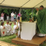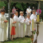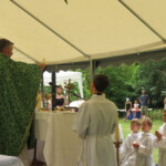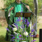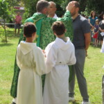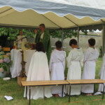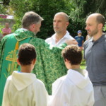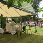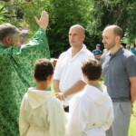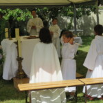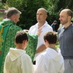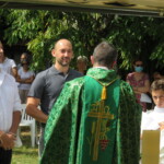 La célébration eucharistique se poursuit, la prière soutenue par un petit chœur de chantres et d’instrument… Prières pour notre communauté, prière pour les pères, dont c’est la fête aujourd’hui.