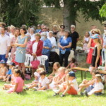 Les barnums sont montés. Dès 9h15, se présente la quinzaine d’enfants de l’éveil à la foi. Ils vivent leur rencontre dans l’église d’Azieu avec leurs animateurs.