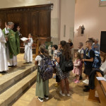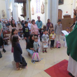 « Bénir », c’est « dire du bien »… et quand Dieu bénit, sa parole est efficace et ce bien nous est donné… Ainsi ce qui compte vraiment, ce ne sont pas les cartables et autres instruments de travail… Mais nous voulons bénir les enfants, et leurs parents, et leurs éducateurs, et ainsi placer toute l’année qui s’ouvre sous le regard du Seigneur qui nous aime.